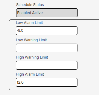 INSIGHT can modify your sensor limits based on your defined schedule. This can assist when sensors need to have different tolerances between limits during certain hours.