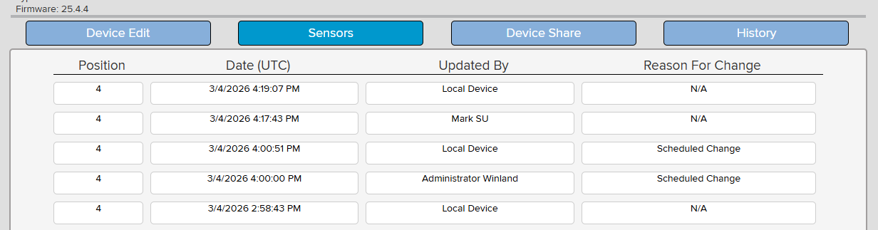 NOTE: Any sensor setting change from INSIGHT will roll down to the device, and the device will confirm the changes back to INSIGHT. This is why you should see two changes for a single setpoint change when adjustments are made from INSIGHT.
